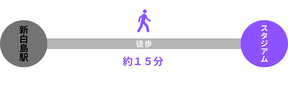 - 駅から徒歩30分と聞くと少し遠く感じるかもしれませんが、このルートの最大のメリットは「乗り換えなし」でスタジアムへ向かえること