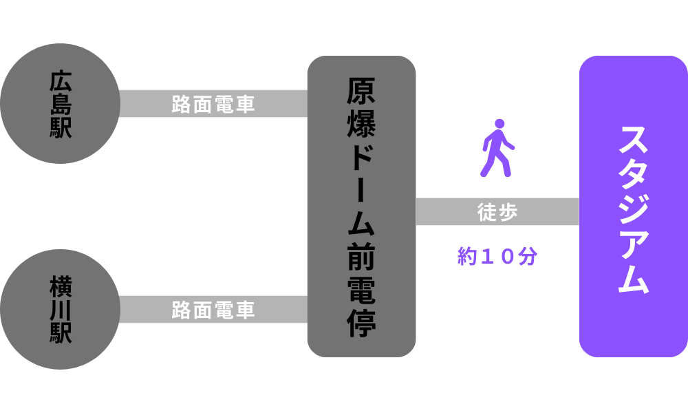 スタジアム最寄り駅の路面電車「原爆ドーム前」電停からすぐの場所にあります。