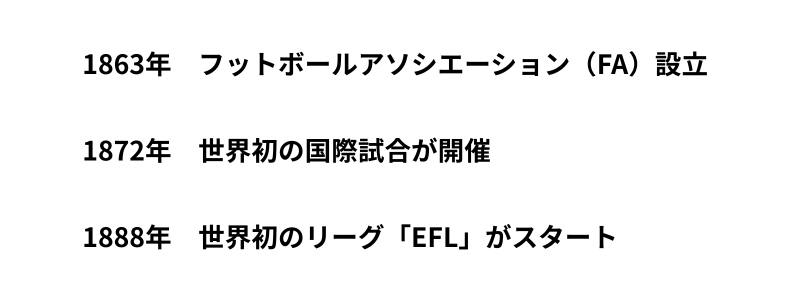 1888年には、イングランドで世界初のリーグ「フットボール・リーグ(EFL)」が開幕しました。これが、現代のプロリーグの原型(げんけい)となっています。