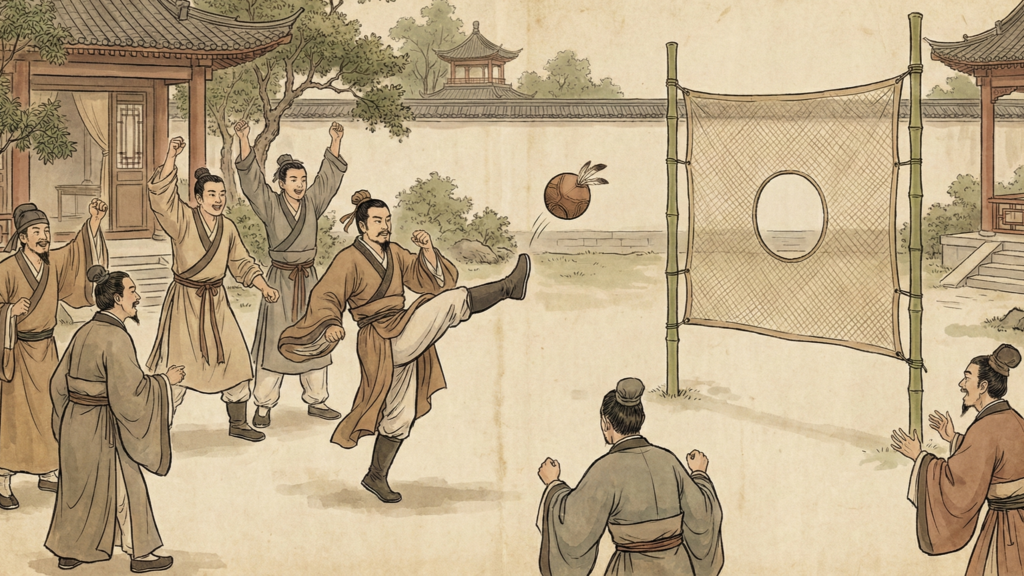 中国の「蹴鞠」とは:紀元前3世紀ごろ(漢の時代)、兵士の軍事訓練として行われていたものです。