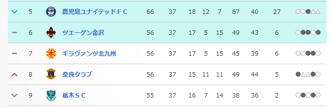 注目の的となっているのは、J2昇格プレーオフ進出圏内ギリギリの「6位」を巡る争いです。