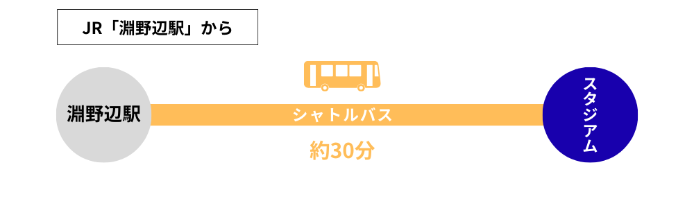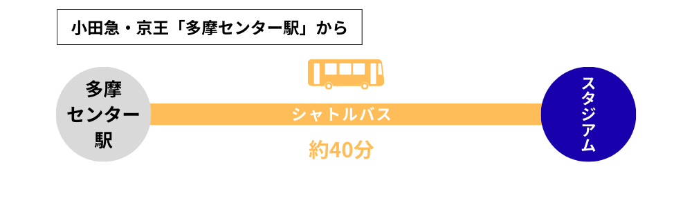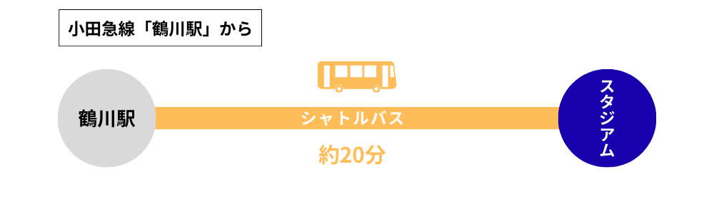 鶴川駅からの有料シャトルバスを選びましょう。スタジアムまでの距離が最も近く、所要時間も最短です 。